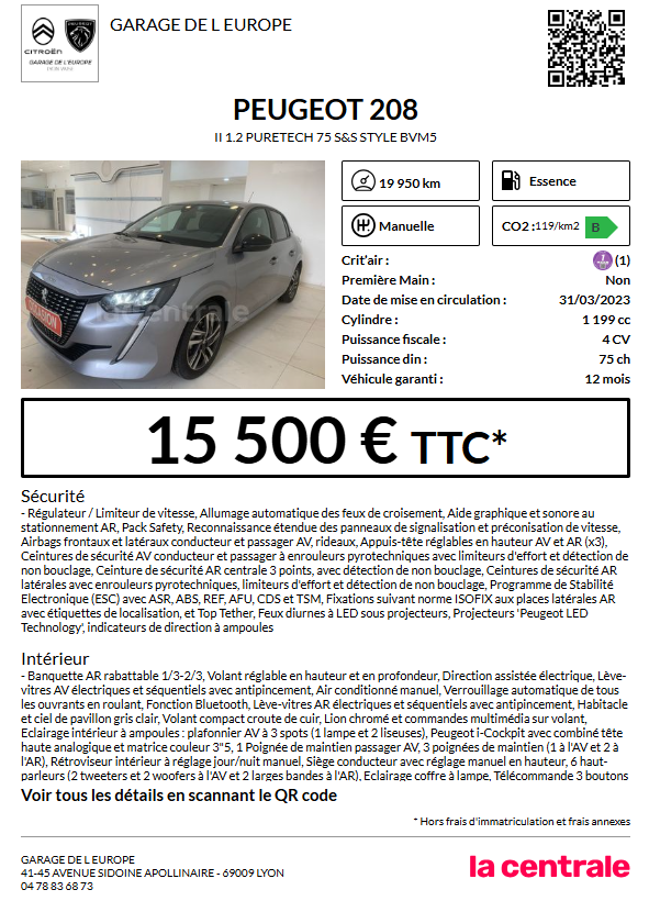 Consultez la galerie d'annonces du Garage de l'Europe à Lyon 9